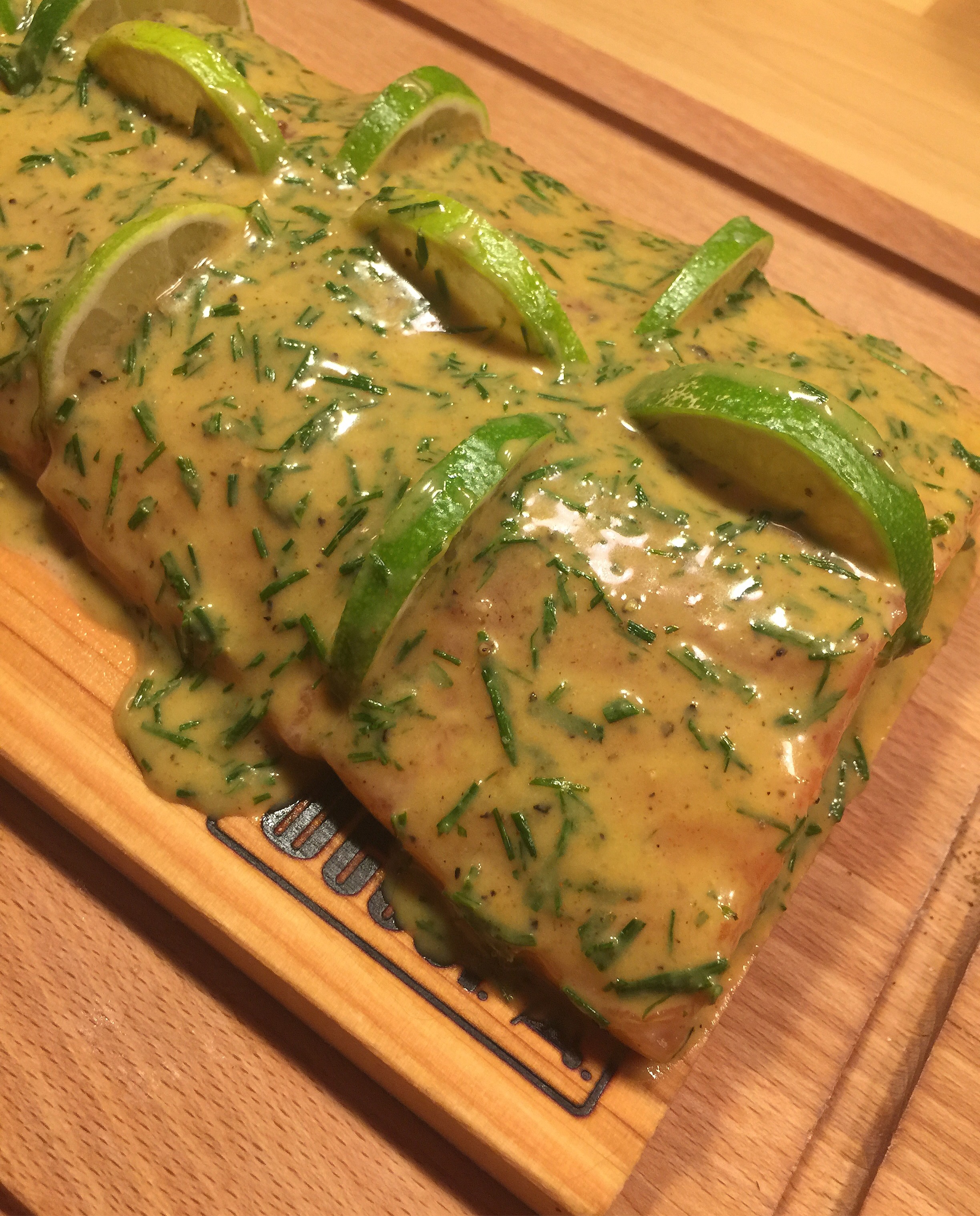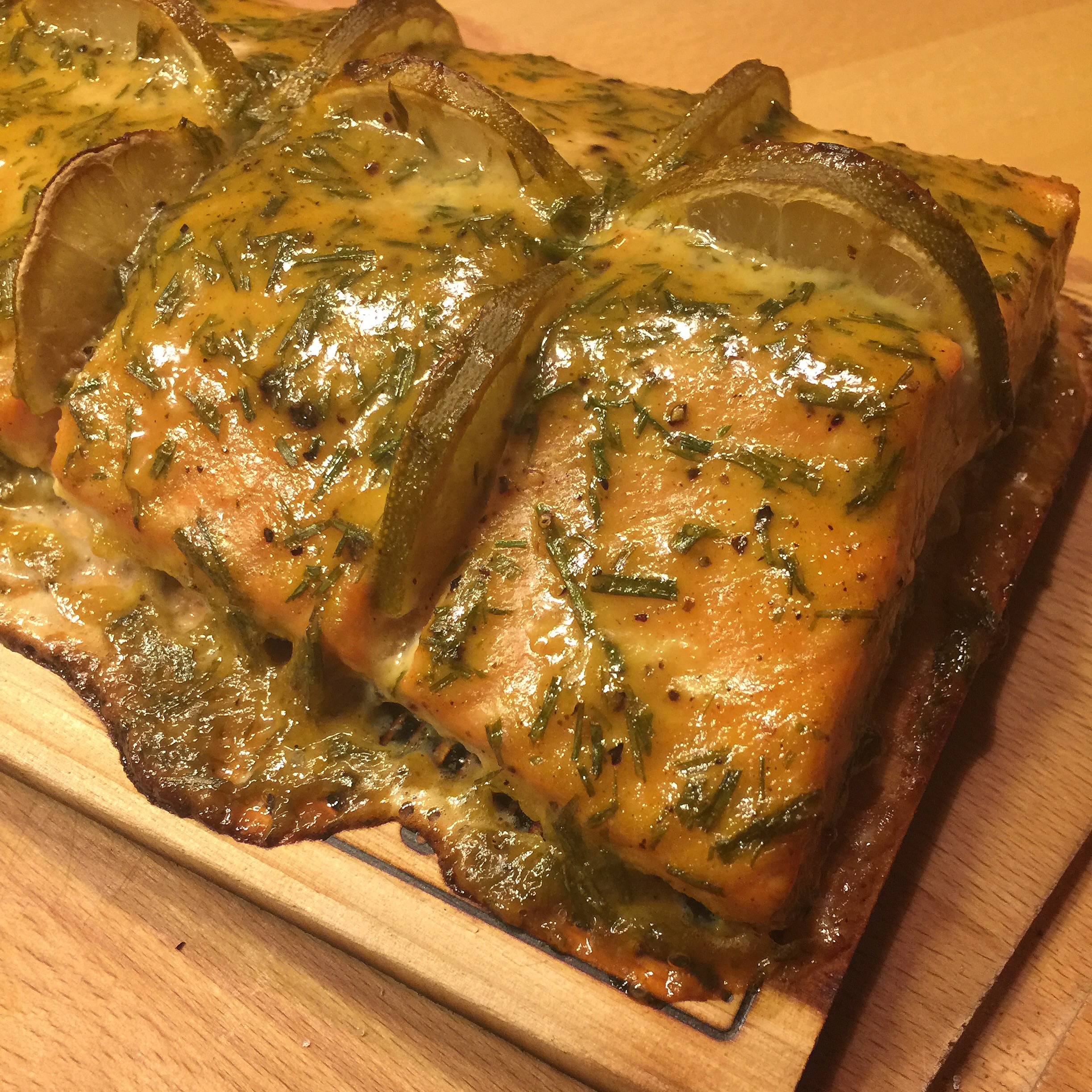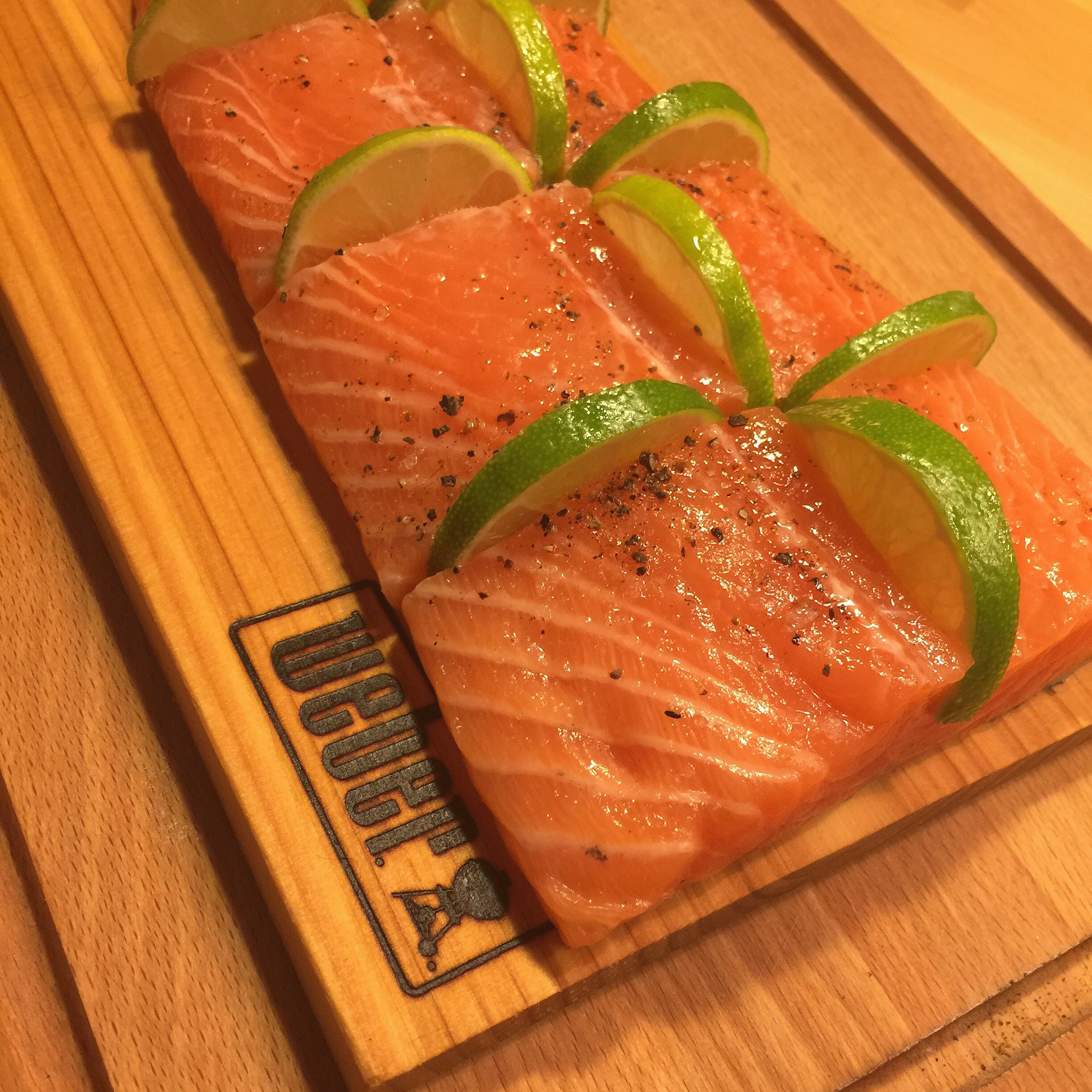 Zum Schluss stellen wir unsere Planke auf den Grill wie zum Beispiel dem Weber Mastertouch 57GBS in die indirekte Fläche ca 20-30min lang bei ca 200Grad. Wenn das Eiweiß aus dem Fisch austritt, dann ist das ein Zeichen, das euer Fisch schon nahe der Kerntemperatur ist. Ich nehme meinen Fisch bei einer KT von 55 Grad herunter.