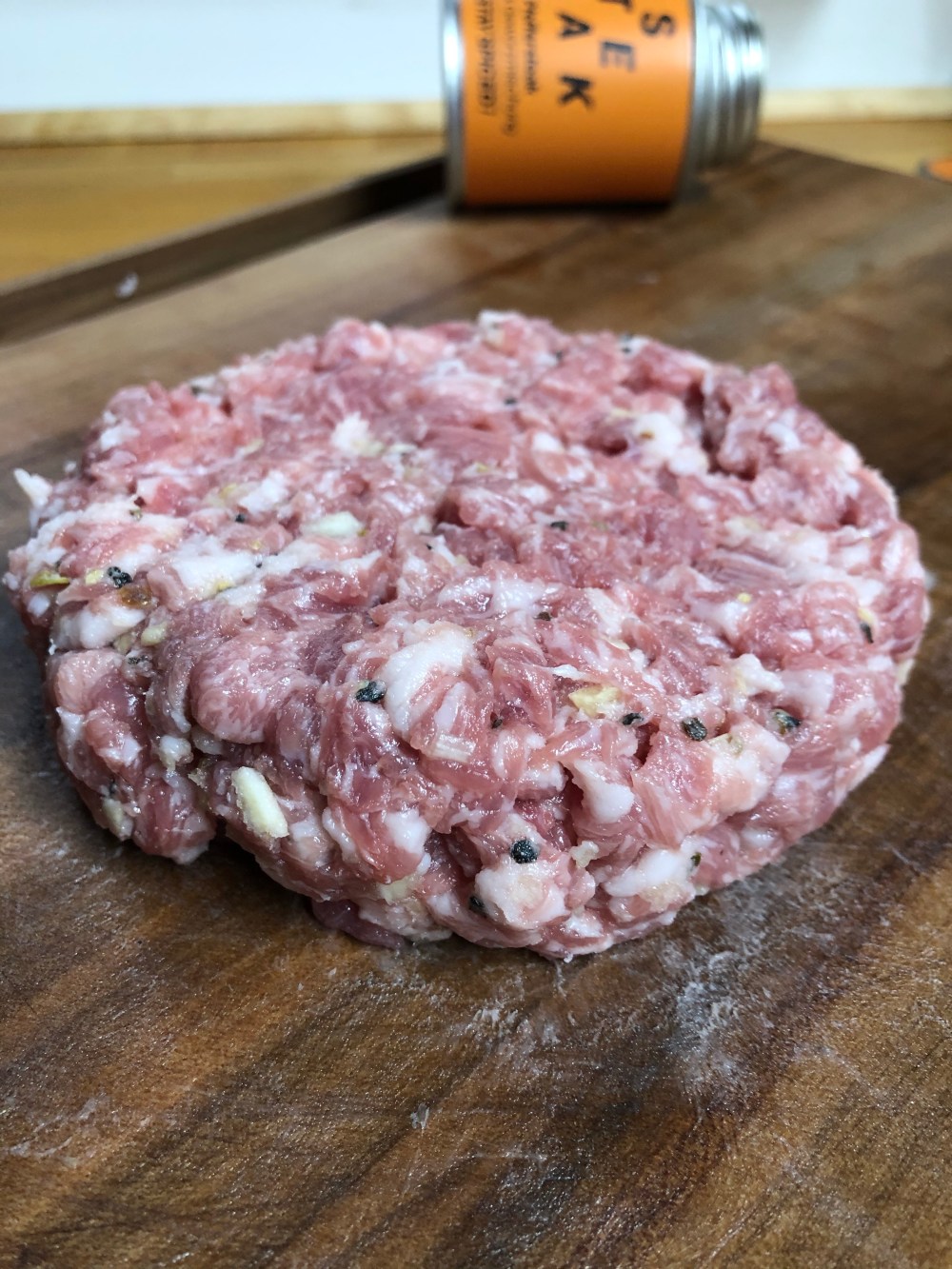 Iberico Secreto Burger? Ja richtig bei dieser Qualität mussten wir es einfach probieren ein Hand-geschnittenes Burger Patty herzustellen. Genommen haben wir dafür ca.300g Secreto von Kreutzers die wir in feine Würfel geschnitten haben und anschließend mit etwas Steak Gewürz von Stayspiced gewürzt und ordentlich miteinander vermengt haben.