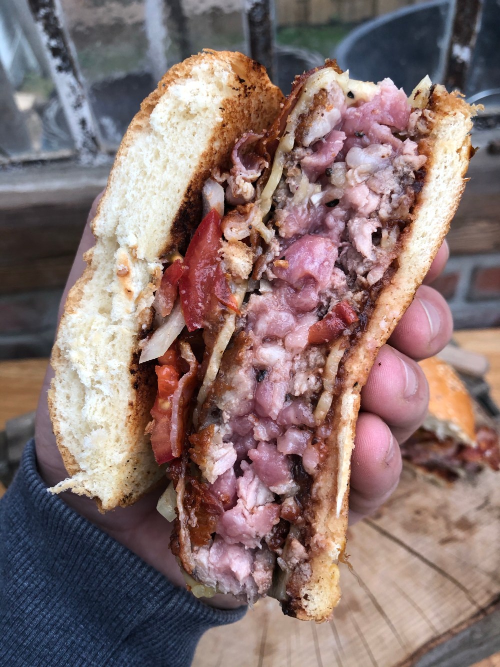 Um das ganze im Geschmack etwas abzurunden gab es eine ordentliche Ladung Bacon , Käse ,Zwiebeln und unsere leckere Red Berry Chipotle Sauce oben drauf . Die Buns kommen von der Burgerbunsbakery und sind absolut zu empfehlen.