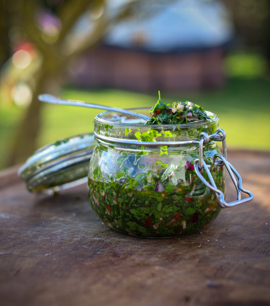 Chimichurri passt nicht nur zu Steak, sondern auch zu gegrilltem Hähnchen, Lamm, Gemüse oder sogar Brot. Du kannst es auch als Marinade verwenden: Einfach Fleisch ein paar Stunden darin einlegen und dann direkt auf den Grill! Im Kühlschrank hält sich Chimichurri in einem Glas mit Deckel bis zu einer Woche – das Öl konserviert.