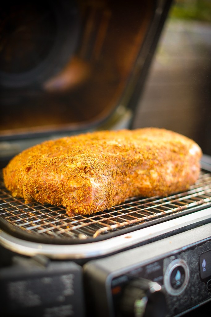 Reibe den Schweinenacken großzügig mit deinem BBQ-Rub ein. Wirklich von allen Seiten – hier darf’s ordentlich krachen. Lass das Fleisch idealerweise für 1–2 Stunden (oder über Nacht) im Kühlschrank ziehen.