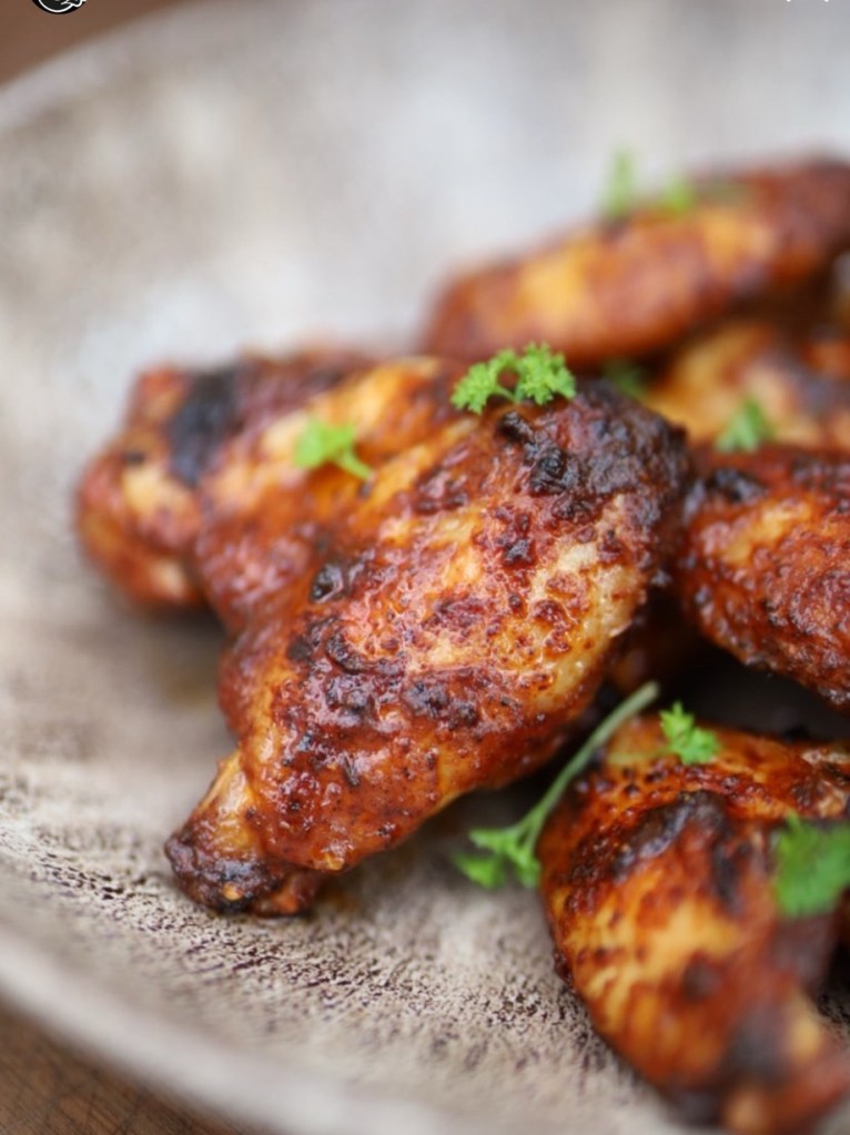 Die Wings ca. 40–45 Minuten garen, bis sie goldbraun und knusprig sind. Zwischendurch einmal wenden. Je nach Hitzequelle etwas kürzer oder länger.