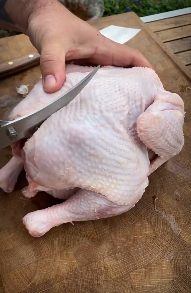 1. Hähnchen vorbereiten (spatchcocking):