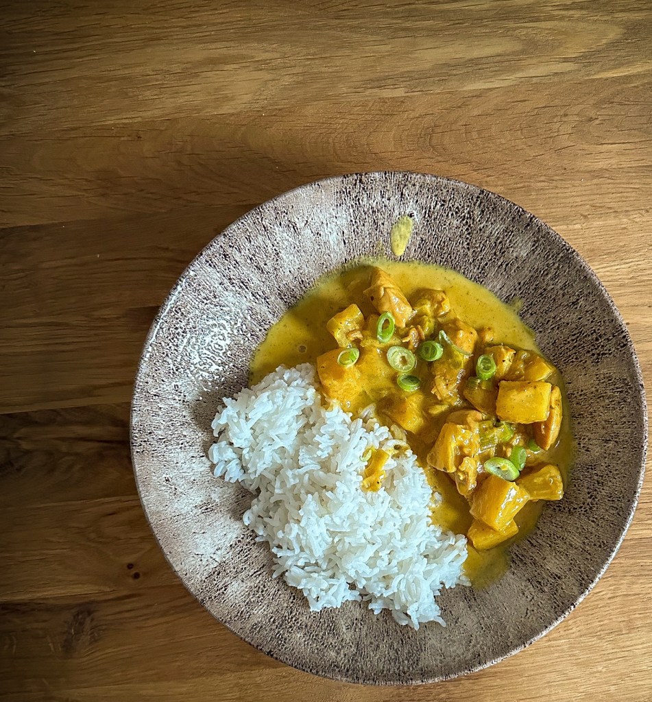 Hähnchenstücke und Ananas wieder in den Wok geben. Bei mittlerer Hitze ein paar Minuten köcheln lassen, damit sich die Aromen verbinden. Abschmecken: Mit Salz, Pfeffer und ggf. etwas mehr Curry oder Honig nach deinem Geschmack final würzen.