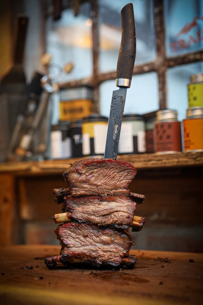 Die Short Ribs kommen für ca. 8 – 10 Stunden in den Smoker, je nach Größe und Dicke. Zielkerntemperatur: ca. 93–96 °C – dann sind sie butterzart.