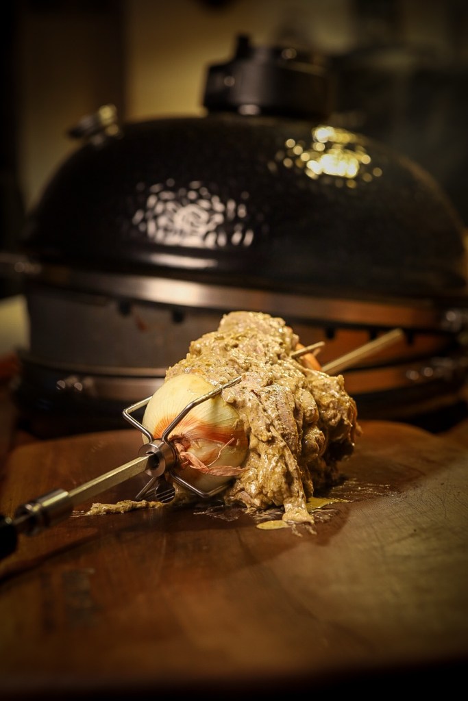 Den Spieß einhängen und für ca. 1,5–2 Stunden grillen, bis das Fleisch außen schön knusprig und innen saftig ist. Wer möchte, kann zwischendurch etwas Marinade oder Bier über das Fleisch pinseln.