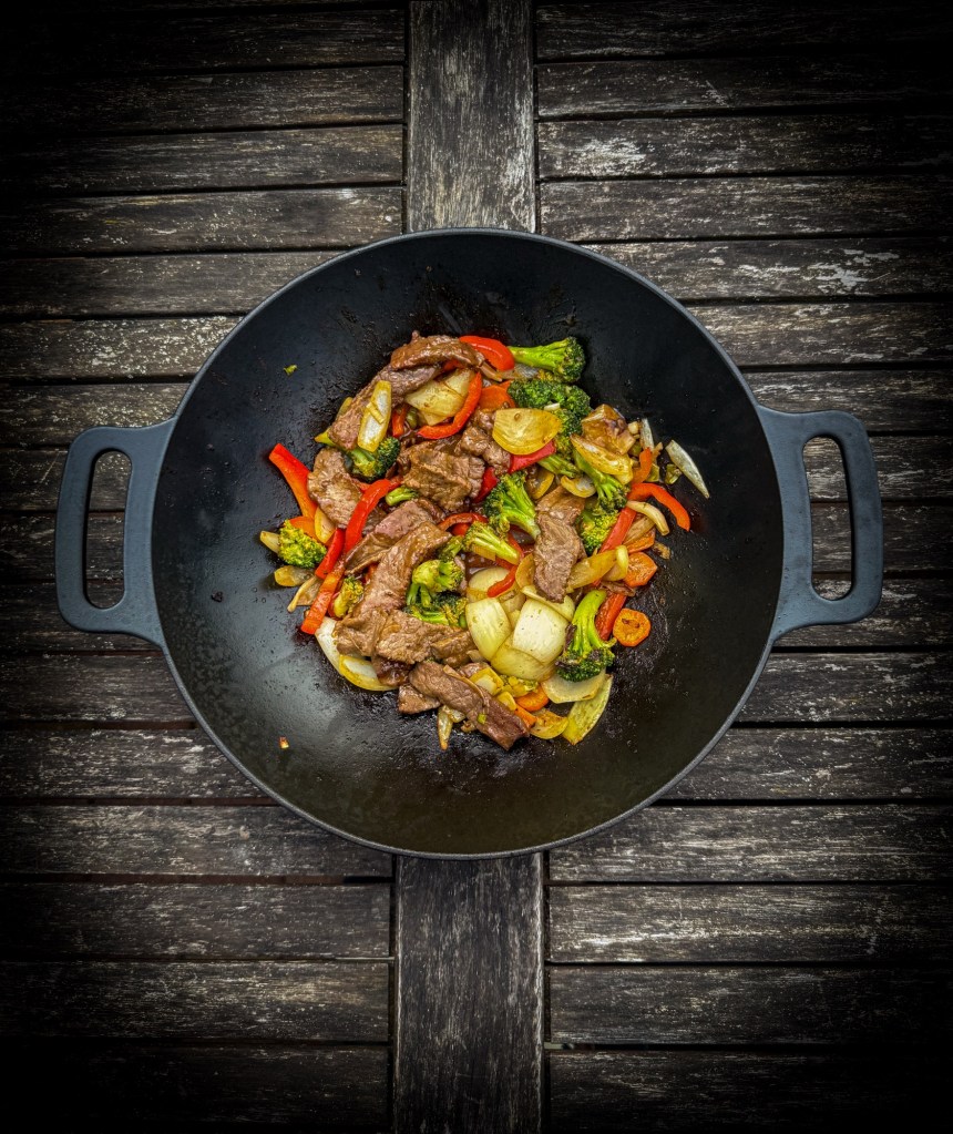 Wenn BBQ auf die Aromen der chinesischen Küche trifft, wird’s richtig lecker! Heute gibt’s ein schnelles Wok-Rezept, das sich perfekt für den Sommerabend im Garten eignet: zartes Rindfleisch mit knackigem Gemüse – alles frisch im RÖSLE-Wok auf dem Allflame Hero 4 zubereitet.